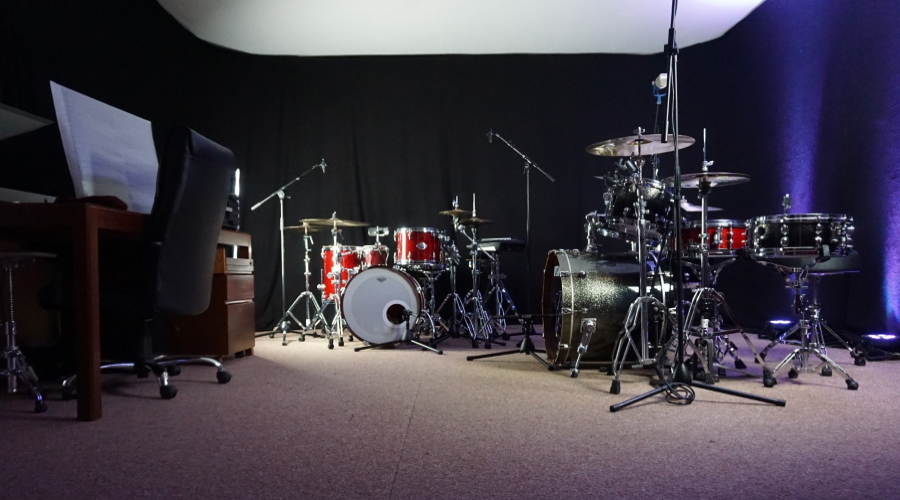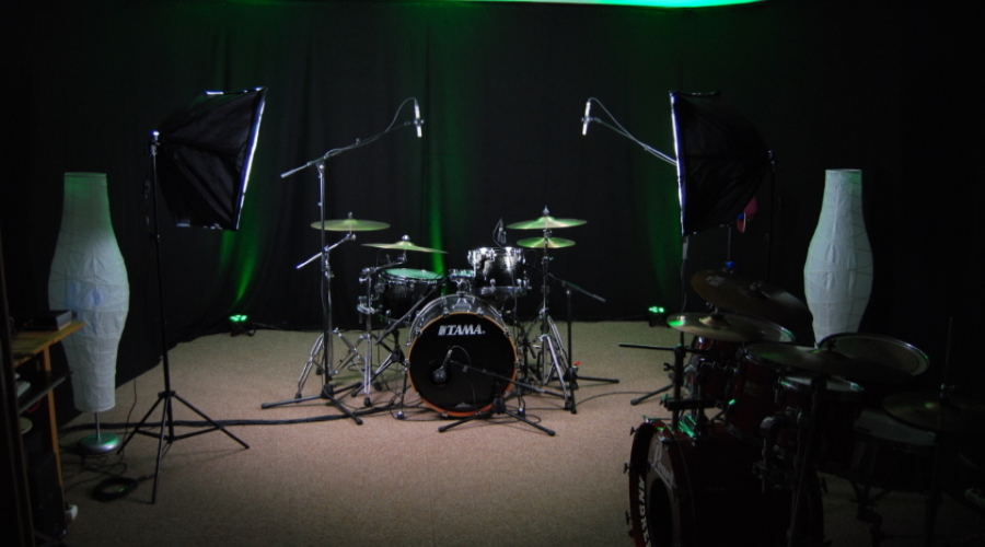 Aufnahmeraum, jetzt mit zwei mikrofonierten Sets ...
